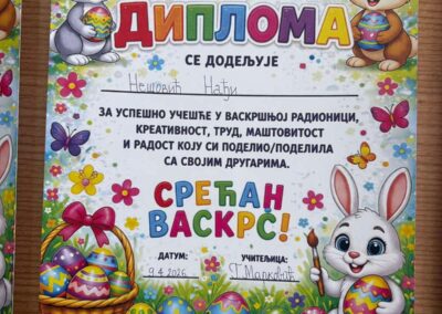 У сусрет Васкрсу, ученици из продуженог боравка и издвојених одељења у Милатковићу, Рватима као и ученици другог и четвртог разреда, припремали су лепе и маштовите радове. Кроз игру и креативност, ученици су унели радост празника у своје учионице.